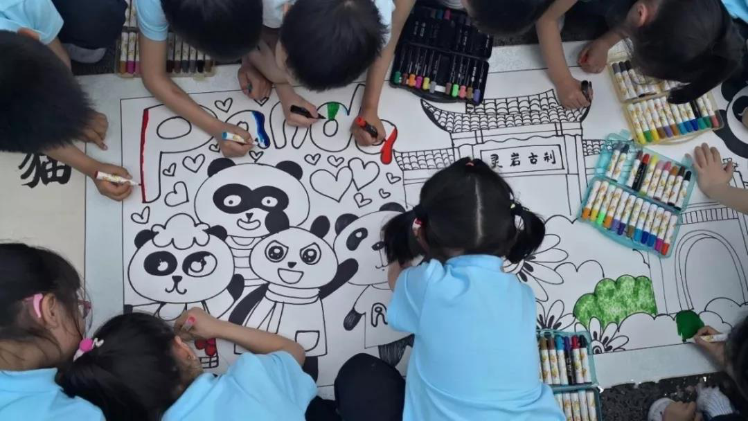 玩得不亦乐乎的孩子们,还不忘一一看望了青城、玉垒、离堆、灵岩四只“小家伙”,并用自己创作的儿童诗与画作,表达了对这四位都江堰“老乡”的喜爱和关注。